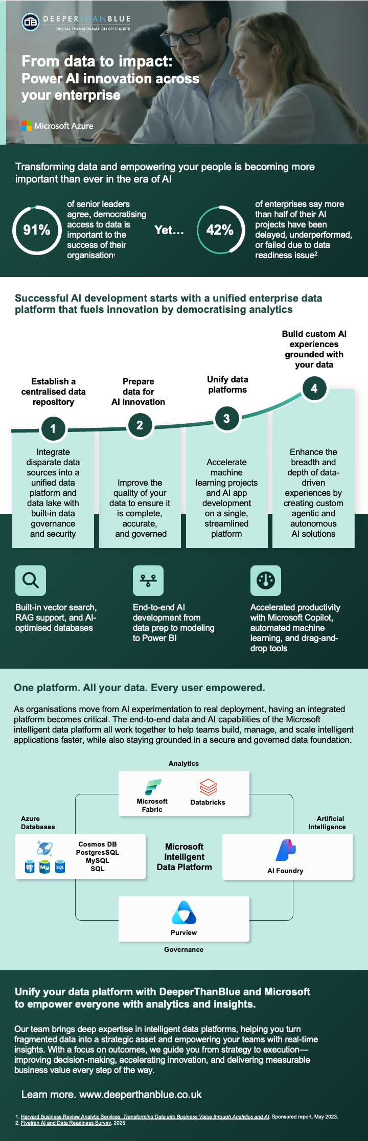 Navigating the evolving Power BI landscape requires expertise. At DeeperThanBlue, we help organisations leverage the latest Power BI and Microsoft Fabric capabilities to transform how they store, access, and use their data.